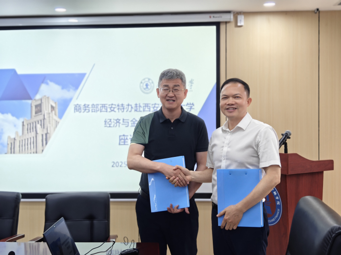 6月24日,谢莹副特派员一行拜会西安交通大学,与西安交通大学党委副书记、经济与金融学院院长孙早,以及部分教师代表座谈交流,并签署合作备忘录。下一步,双方将在智库建设、政策研究、人才培养等方面拓展合作,共同为西北地区商务高质量发展注入新的活力。宋惠勤副特派员参加上述活动。